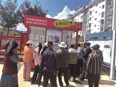 本报讯 通讯员张文胜、翁晓东报道 近日,四川省凉山州盐源县卫城镇街道社区里新出现了一个醒目的岗亭。闻讯而来的居民纷纷驻足围观。原来,这是一个新型招聘岗亭,整齐地张贴着几十家企业的招聘信息,吸引不少居民仔细查看适合自己的工作岗位。