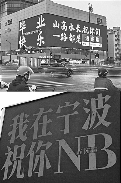 “不管去或留,宁波都谢谢你来过!”近日,宁波街头一块电子大屏火遍朋友圈,屏幕上滚动播放着十余张创意文案,不仅融合了宁波各地的名称谐音,诙谐幽默之余更满载对毕业学子的真诚祝福。
