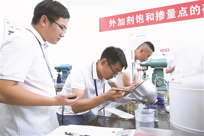 | 选手正竞技“外加剂饱和掺量点的确定”项目。 记者邹伟锋 摄 |