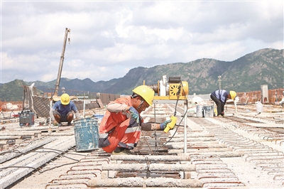 近日,在位于温岭市箬横镇的太龙快速路第一标段施工现场,百余名工人战高温、斗酷暑,坚守岗位,用汗水抢进度、赶工期。