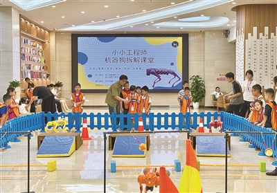 | 孩子们上“小小工程师 机器狗拆解课堂”。 记者沈佳慧 摄 |