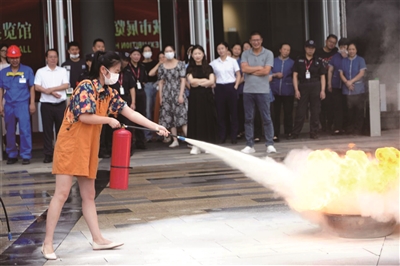 随着警报声响起,展馆应急预案立即启动。各楼层疏散引导员冷静就位、清晰指引,全体人员低姿捂鼻,沿预定路线快速、有序撤离至安全集结点。消防救援力量抵达后,迅速展开救火作业,精准扑救着火点,有效防止火灾蔓延……演练活动最后组织开展了灭火器实操训练?,馆内员工通过亲手实操,提升扑救初期火灾的实战能力。黄紫文 文/摄